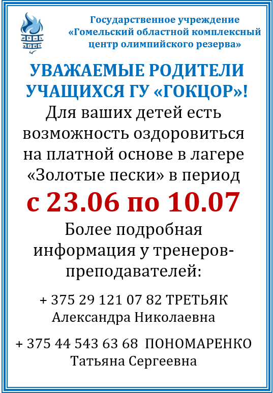 Інфармацыя па аздараўленні для бацькоў навучэнцаў ДУ"ГОКЦОР".
