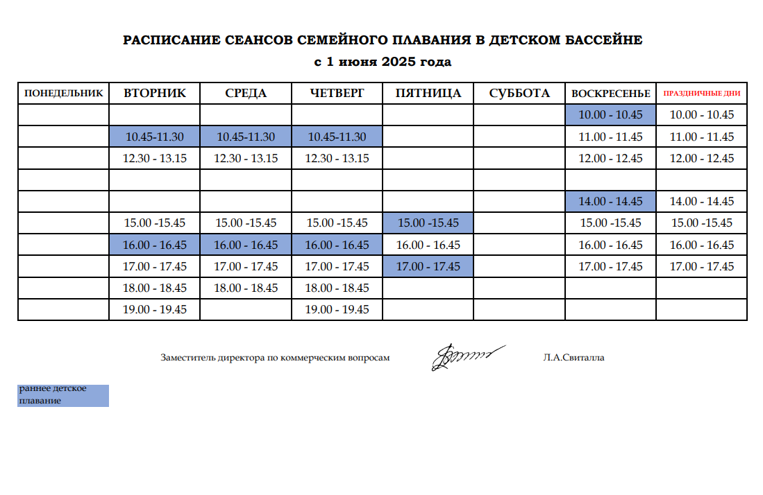 Рады прадставіць вам расклад сеансаў сямейнага і грудничкового плавання ў дзіцячым басейне з 1 чэрвеня.