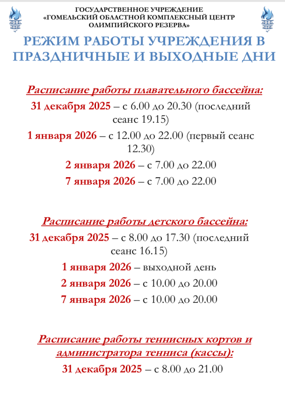 Рэжым працы ўстановы ў святочныя і выхадныя дні.