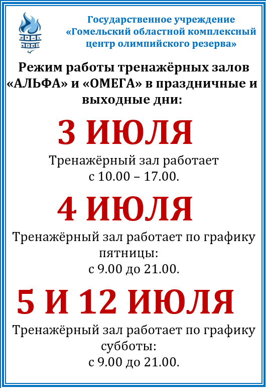 Рэжым працы трэнажорных залаў у святочныя і перадсвяточныя дні.