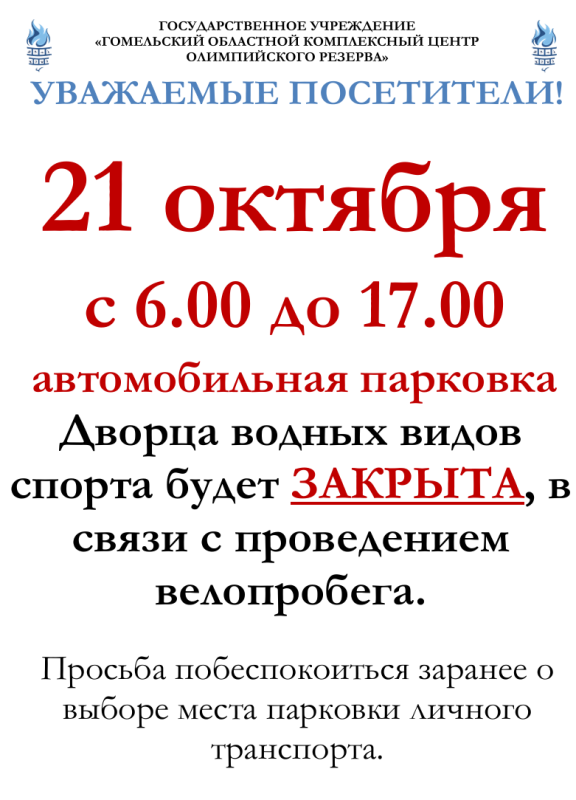 Просьба патурбавацца загадзя аб выбары месца паркоўкі асабістага транспарту.