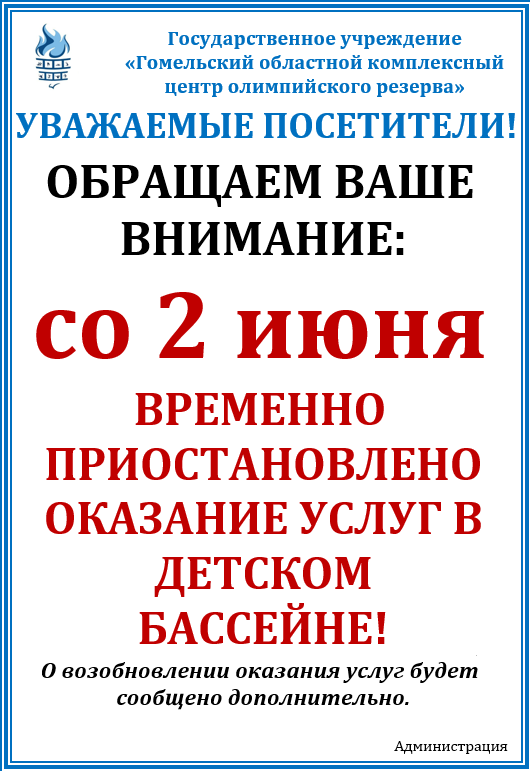 УВАГА! З 2 ЧЭРВЕНЯ ДЗІЦЯЧЫ БАСЕЙН НЕ ПРАЦУЕ!