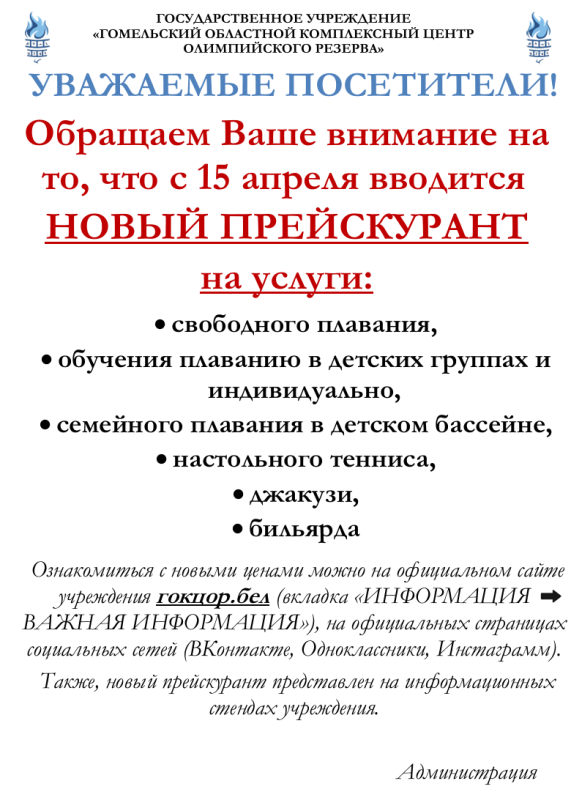 Увага! Змена прэйскуранта з 15 красавіка!