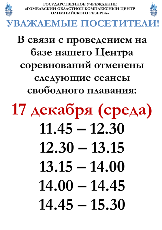 !Важна! Адмена сеансаў вольнага плавання ў сувязі з правядзеннем спаборніцтваў.