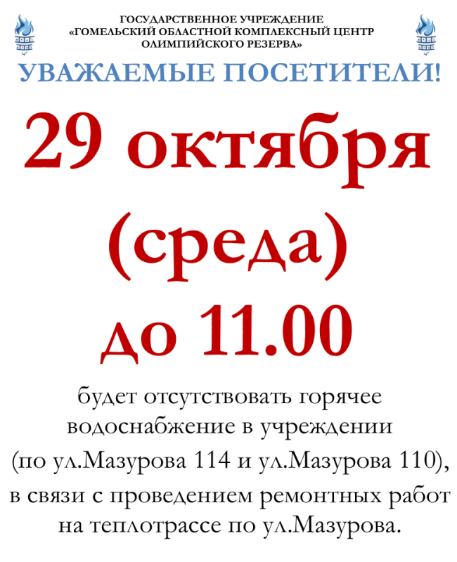 Важна! Адсутнасць гарачай вады ва ўстанове 29 кастрычніка.