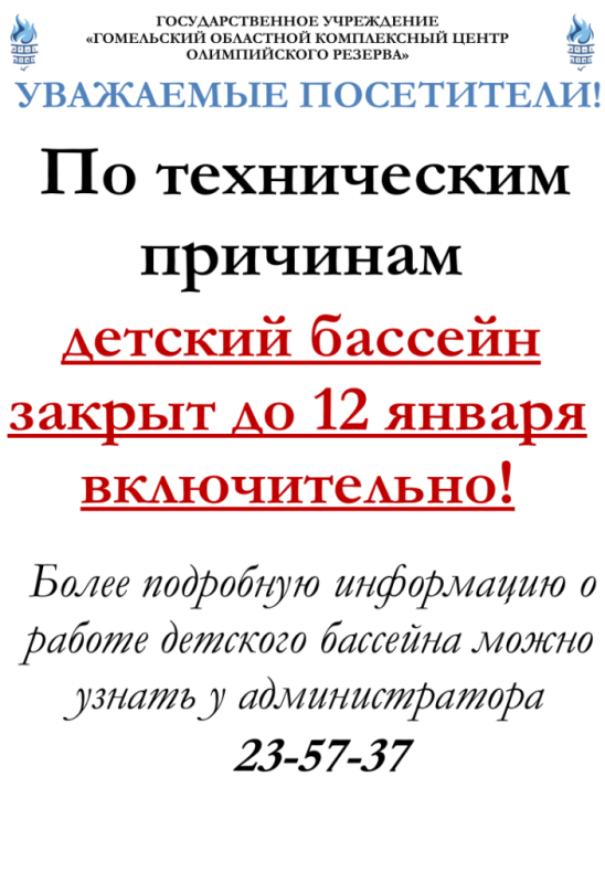 Важна! ДЗІЦЯЧЫ БАСЕЙН ЗАЧЫНЕНЫ ДА 12 СТУДЗЕНЯ ЎКЛЮЧНА!