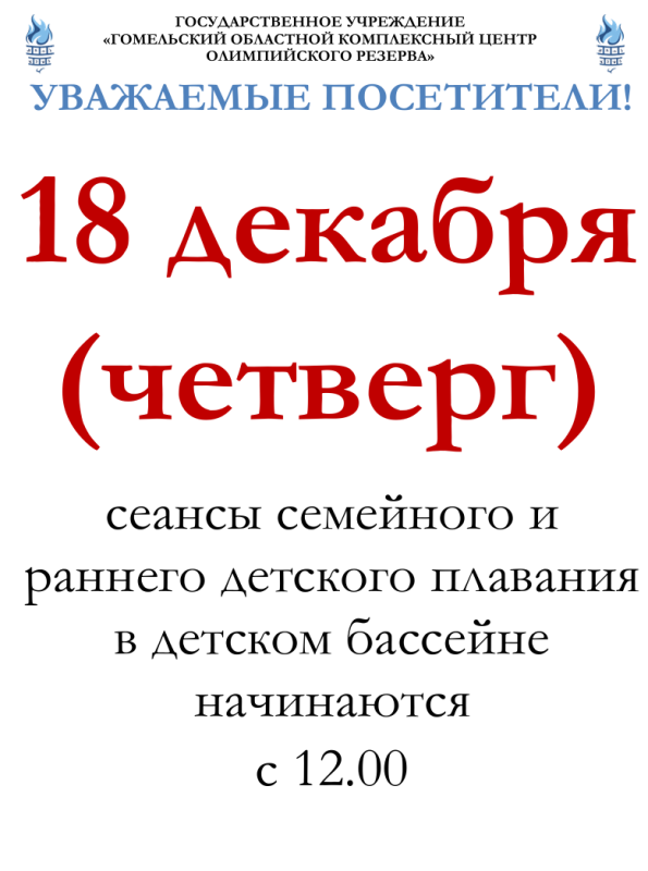 Змены ў раскладзе сеансаў сямейнага і ранняга дзіцячага плавання.